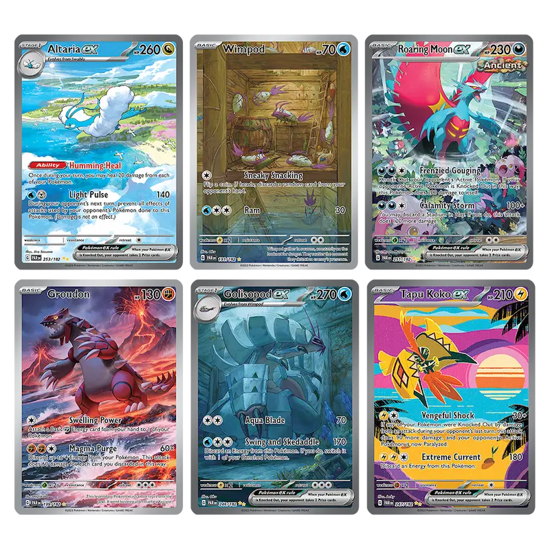 In de Scarlet & Violet – Paradox Rift uitbreiding betreed je een wereld waarin de tijdlijnen botsen. Met indrukwekkende Ancient en Future Pokémon zoals Roaring Moon en Iron Valiant, introduceert deze set nieuwe strategieën en epische art styles voor zowel spelers als verzamelaars.